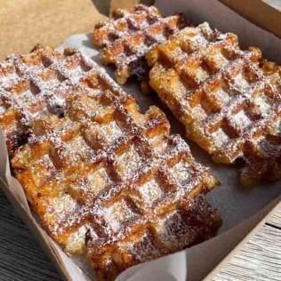 Sweet Crunch was accidentally found by taking a short trip to Brussels, Belgium where many liege waffles were eaten from food trucks and stands around the city. There, an addiction started that couldn't be curbed anywhere and what started in our very own kitchen took us to venture into what you'll find at The Market. Liege waffles are made from a dough that rises and is mixed with sweet chunks of pearl sugar which make a liege waffle a liege waffle! These sugars caramelize while in our iron which creates a delicious outer crunchy layer.